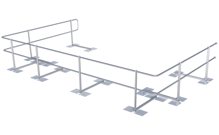 Seitenschutzgeländer zum Aufschweißen auf Bitumen oder gewebeverstärkter Folie.