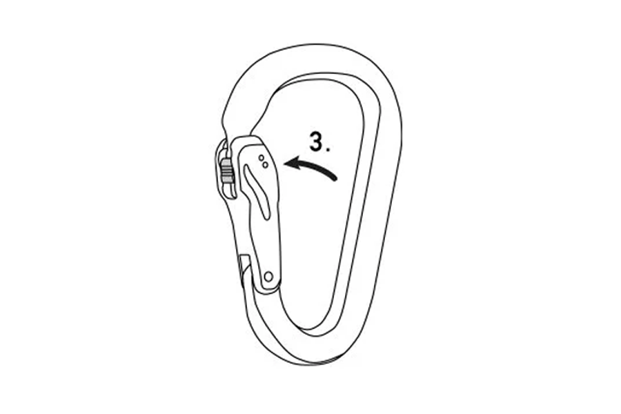 Und trotzdem öffnet sich der Karabiner gleichzeitig nicht von selbst, denn der Slider ist ins Gate abgesenkt.