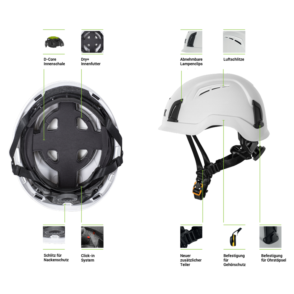 Arbeitsschutzhelme müssen die verschiedensten Arbeitssituationen meistern können. Deshalb ist eine große Auswahl an Zubehör, auch beim KASK Zenith X, unerlässlich.