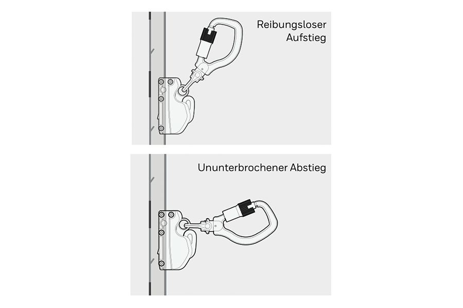 Die neueste Generation des mitlaufenden Auffanggeräts Söll VR500 bringt ein verbessertes Design, mit zum einen mehr Sicherheit für die Anwender und zum anderen ermöglicht es ein komfortableres Steigen.