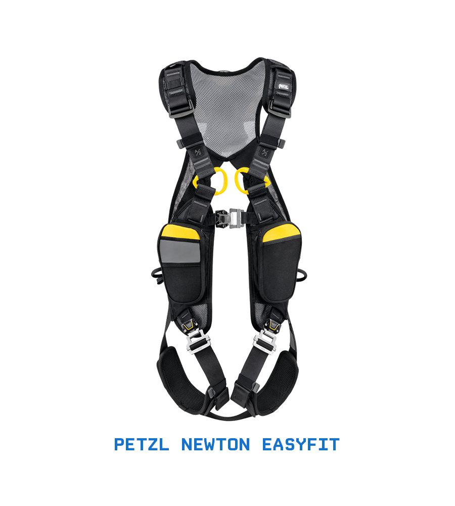 Die FAST LT-Schnallen an den Beinschlaufen erleichtern das Anlegen des Gurtes, denn zum Anziehen müssen die Einstellungen nicht verändert werden. Besonders komfortabel für Anwender sind die schaumstoffgepolsterten Schulterträger sowie das atmungsaktive Material. Petzl hat in den Auffanggurt außerdem zwei Reißverschlusstaschen, um kleine Gegenstände zu verstauen, eingearbeitet. Die Materialschlaufen und weiteren Befestigungsmöglichkeiten ermöglichen einen raschen Zugriff auf notwendige Arbeitsgeräte. Zusätzlich erhöhen die textile sternale Auffangöse und die dorsale Auffangöse aus Metall die Einsatzmöglichkeiten an absturzgefährdeten Arbeitsplätzen. Der Petzl NEWTON Easyfit ist in der europäischen Variante nach europäischen und russischen Normen zertifiziert.