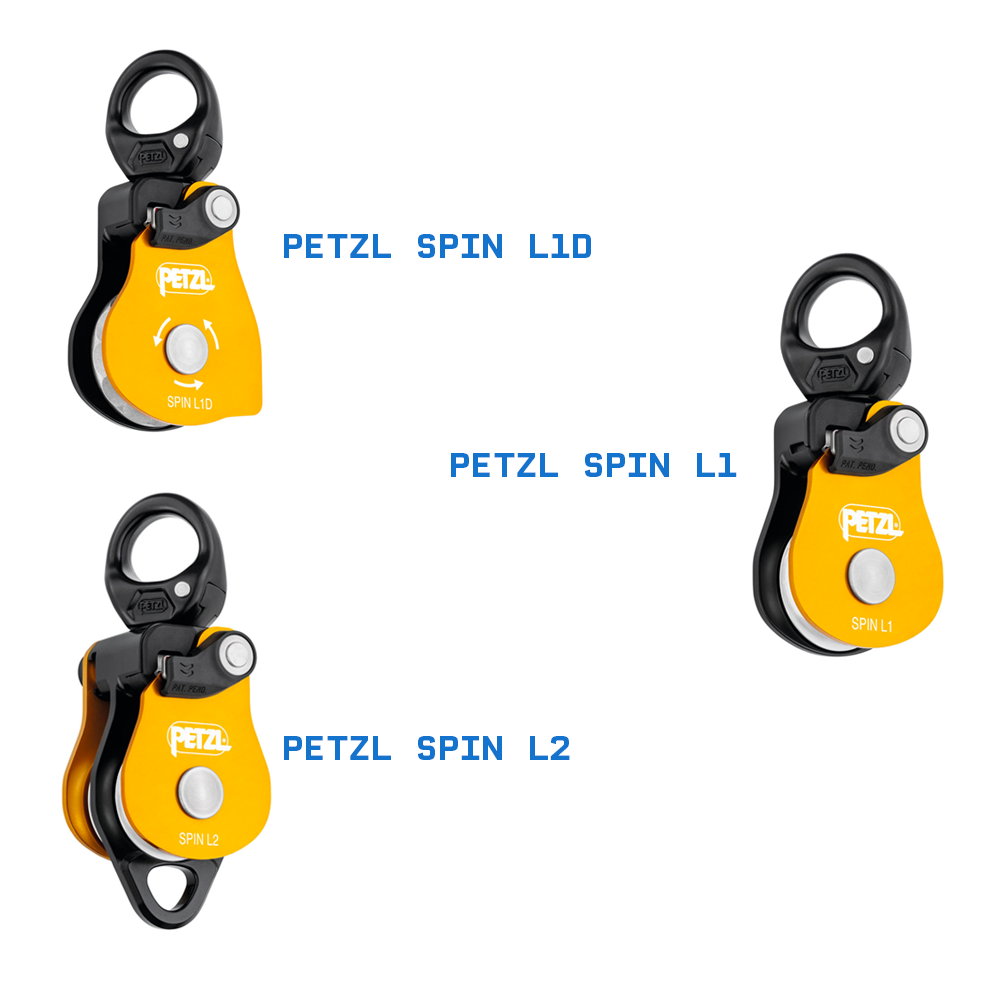 Die komplette SPIN-Serie zeichnet sich durch einen hohem Wirkungsrad und integriertem Wirbel aus. Zudem ist es problemlos möglich die SPIN Umlenkrollen per Handschuh zu bedienen. Außerdem unterstützt der integrierte Wirbel das Einlegen des Seils, da das Gerät am Anschlagpunkt dauerhaft ausgerichtet ist.