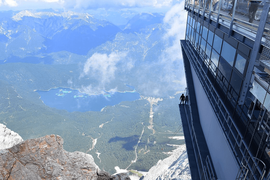 Deutschlands höchstes Bergerlebnis – gesichert durch Absturzsicherungen von INNTOECH. Unter widrigsten Witterungsverhältnissen war eine technologische Meisterleistung notwendig, um die Tal- und Bergstation der neuen Seilbahn für Wartungs-, Reinigungs- und Instandhaltungsarbeiten zu sichern. Im Bereich der Talstation wurden insgesamt 4 AIO-Seilsysteme mit einer Gesamtlänge von 222 Metern montiert. Für die Bergstation lieferte INNOTECH neben 3 AIO-Seilsystemen zur sicheren Schneeräumung und Wartung des Dachs, zusätzlich für Instandhaltungs- und Reinigungsmaßnahmen, 6 technisch und optisch speziell an die Fassade angepasste Taurus-Schienensysteme.