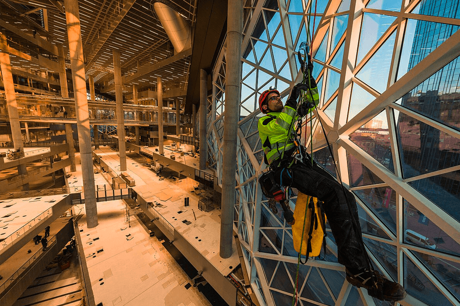 Am spektakulären elfstöckigen Gebäude in Berlin wurden von INNOTECH 10 Kletterrouten für Reinigungs- und Instandhaltungszwecke und 300 Laufmeter Taurus-Schienensysteme installiert. Besonders hervorzuheben ist dabei die Umsetzung der Arbeiten mit Seilzugangstechnik, welche im Vergleich zur bisherigen Verwendung von Hubarbeitsbühnen den Vorteil hat, eine effektivere Arbeitsweise zu ermöglichen. So können bis zu vier Arbeiter gleichzeitig rascher Arbeiten und sind zudem besser geschützt.