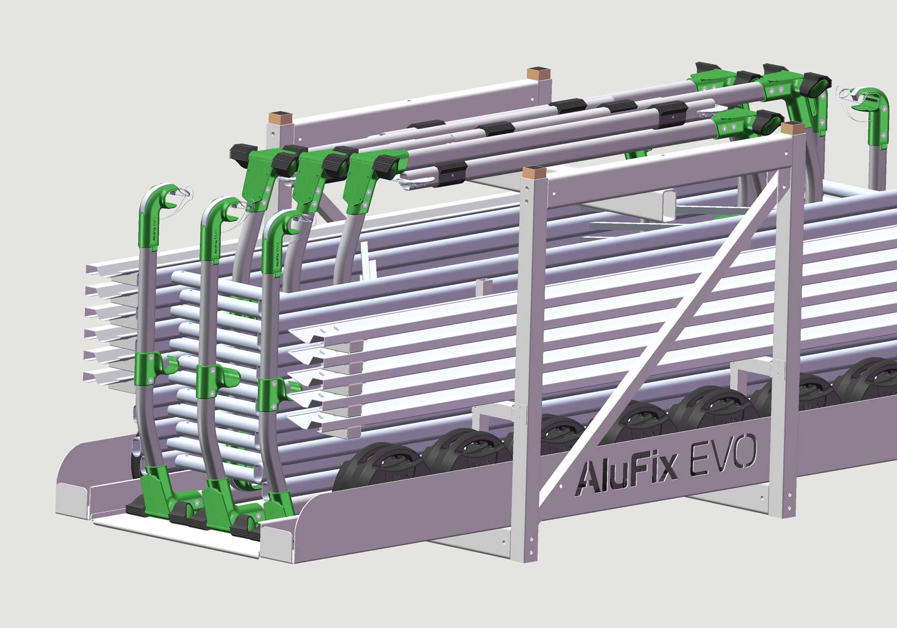 ALUFIX® EVO besteht aus stabilen Aluminiumprofilen, die es besonders langlebig machen. Der Abstand zwischen den Stützelementen beträgt 2,8 m.