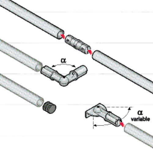 - Stoßverbinder zur Montage von Hand- und Knielauf