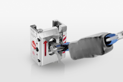 - Ausgestattet mit einem integriertem Bandfallelement zur Minimierung von Fang-Stoß Kräften, trägt es zur Sicherheit wie auch zum Gesundheitsschutz gleichermaßen bei.