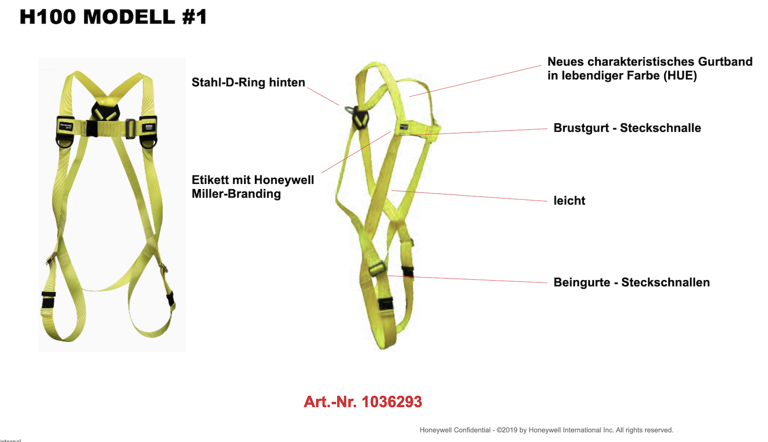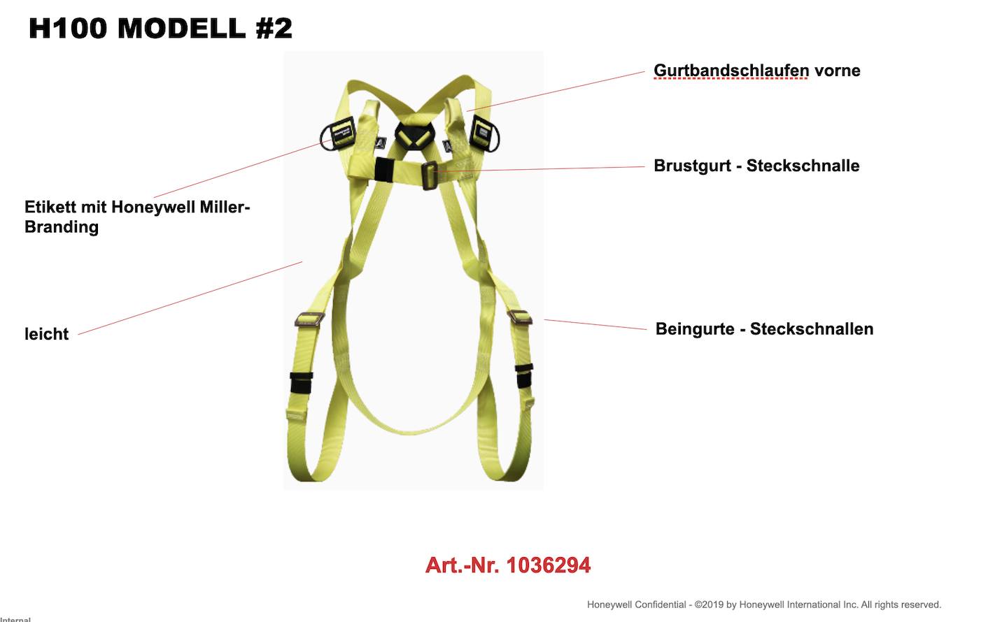 | H 100 one Point Harness | Steckverbindung | Steckverbindung | 0,8 kg | Halterungen für unteren Verbindungsgurte und Verbindungsmittel |