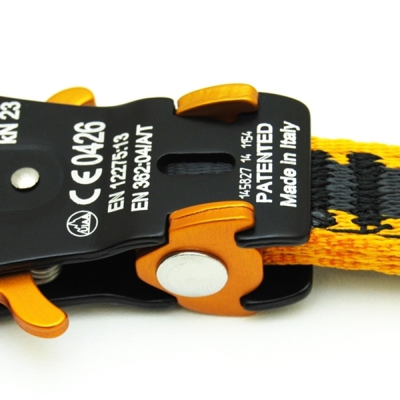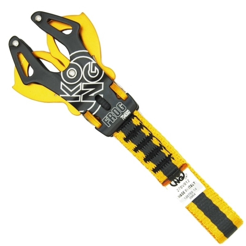 Der revolutionäre Frog Karabiner von Kong schließt beim Anschlagen automatisch! Die weiterentwickelte Version mit vergrößerter 12,7 mm Öffnung ist auch für Stahlseile geeignet.