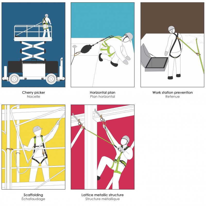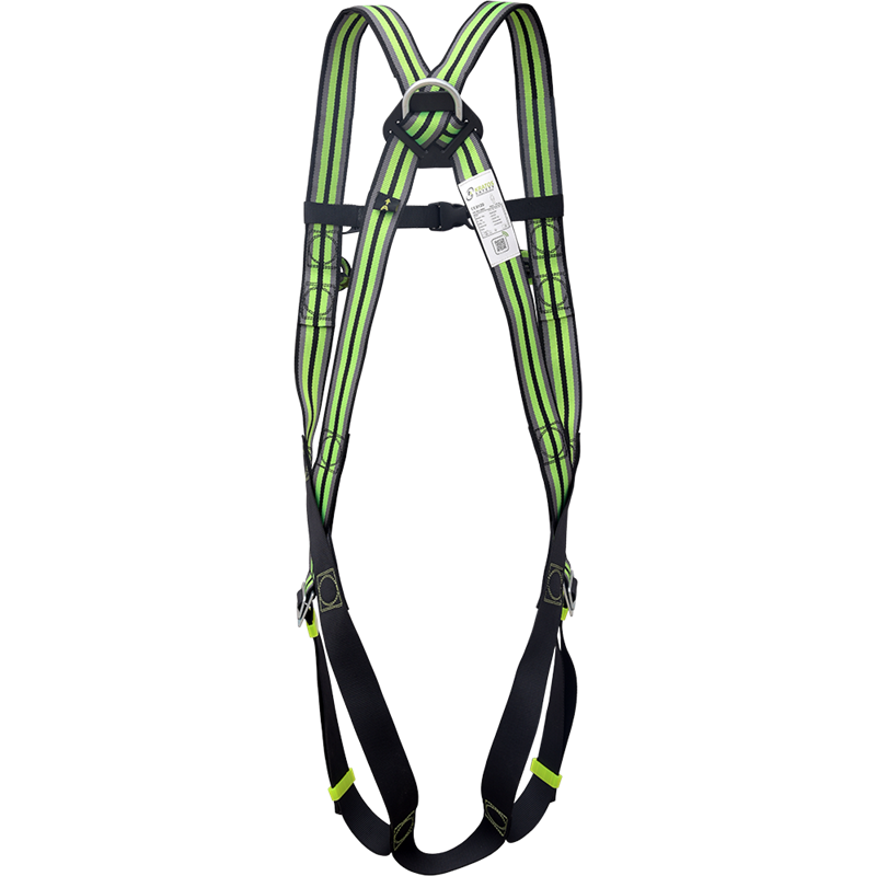 Der Träger kann sich am Rücken, sowie mit den Brust Ösen sichern. Anpassbaer ist der Auffanggurt an den Oberschenkeln.