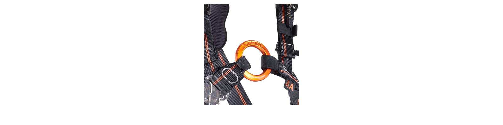 Die Auffangöse ist die einzige Öse am Auffanggurt, welche sturzbelastet werden darf. Sie ist so angeordnet, dass eine optimale Kraftableitung der Sturzenergie auf die Beine / Hüftbereich passiert. Bei allen CE geprüften Auffanggurten muss die Auffangöse mit einem Großbuchstaben „A“ gekennzeichnet sein. Wenn zwei Ösen zusammen als Auffangöse gelten, sind diese jeweils mit "A1/2" gekennzeichnet.